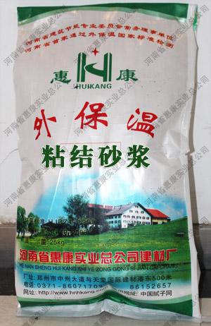粘結砂漿產品說明: “惠康”外墻外保溫砂漿膠黏劑是一種灰色粉料,選用進口聚合物可再分散乳膠粉作為膠接基料,配以優(yōu)質精選骨料組成的粉狀產品,按一定的比例加水混合即可使用。具有粘結強度高,使用方便等優(yōu)點,屬綠色環(huán)保產品。產品特性:1、由優(yōu)質進口可再分散乳膠粉、無…