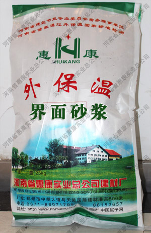 “惠康”界面砂漿,是以進口可再分散乳膠粉作為膠接基料,配以優(yōu)質骨料以及多種添加劑以科學配比組成的粉狀產品,對墻體和石材、竹子、木、水泥、灰鈣、石膏及有機材料有極強的粘結作用具有良好的耐水性、耐久性及柔韌性,能有效的防止墻面的龜裂。直接加水即可使用,屬綠色環(huán)保產品…