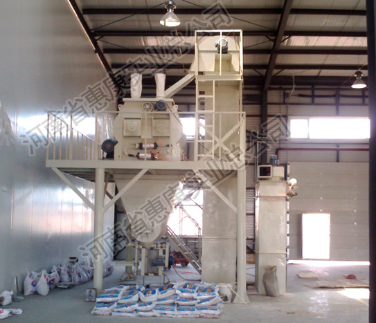 整套流水線,布局合理,結(jié)構(gòu)緊湊,粉塵少,噪音小,運(yùn)行平穩(wěn)??傃b機(jī)功率40KW左右,設(shè)備占地面積30㎡,設(shè)備總高6米,廠房要求6.5m以上,生產(chǎn)所需工人3-4人,日產(chǎn)量30-40噸。根據(jù)不同的客戶需要可分別配備敞口式或者閥口式自動(dòng)定量包裝機(jī)。