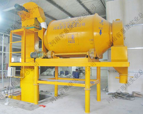 備主機(jī)采用無(wú)軸滾筒式?;⒅檩p質(zhì)砂漿專用混合機(jī),筒體轉(zhuǎn)動(dòng),翻轉(zhuǎn)攪拌,加上獨(dú)特設(shè)計(jì)的內(nèi)部導(dǎo)向板,能很大程度保證顆粒料在原始狀態(tài)下均勻混合,把物料的
